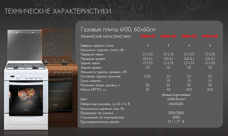 Die Marke wird in Weißrussland hergestellt und erfreut sich aufgrund ihres Budgets und ihrer Benutzerfreundlichkeit bei einheimischen Verbrauchern großer Beliebtheit. Der Hersteller legt die Lebensdauer seiner Öfen auf 10 Jahre fest, danach ist es notwendig, sich mit dem Gasunternehmen in Verbindung zu setzen, um die Möglichkeit eines weiteren Betriebs zu klären.