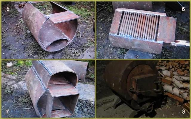 Es ist in rechteckiger Form hergestellt, während mehrere Bleche miteinander verschweißt sind. Sie können ein fertiges Fass oder ein Stück dickwandiges Rohr verwenden.