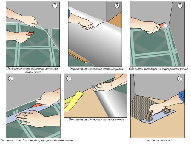 • Danach können Sie Linoleum wie gewohnt verlegen. In Räumen mit weniger als 20 Quadratmetern ist es nicht notwendig, dafür Klebstoff zu verwenden.