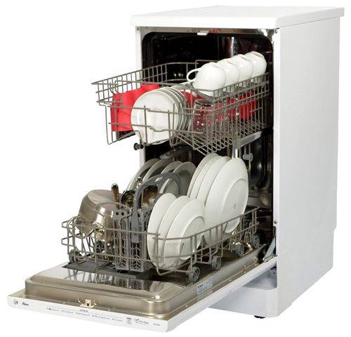 Von uns betrachtet und am beliebtesten sind schmale Geschirrspüler. Ihre Breite beträgt 45 cm und die Kapazität 8-10 Sets. Eine solche Maschine reicht für eine durchschnittliche Familie mit 3-4 Personen. Aufgrund seiner eher kompakten Größe passt ein solches Gerät problemlos in eine kleine Küche und es bleibt sogar noch Platz frei. Gleichzeitig sind ihre Optionen den Modellen in voller Größe nicht unterlegen, aber sie sind sparsamer im Ressourcenverbrauch.