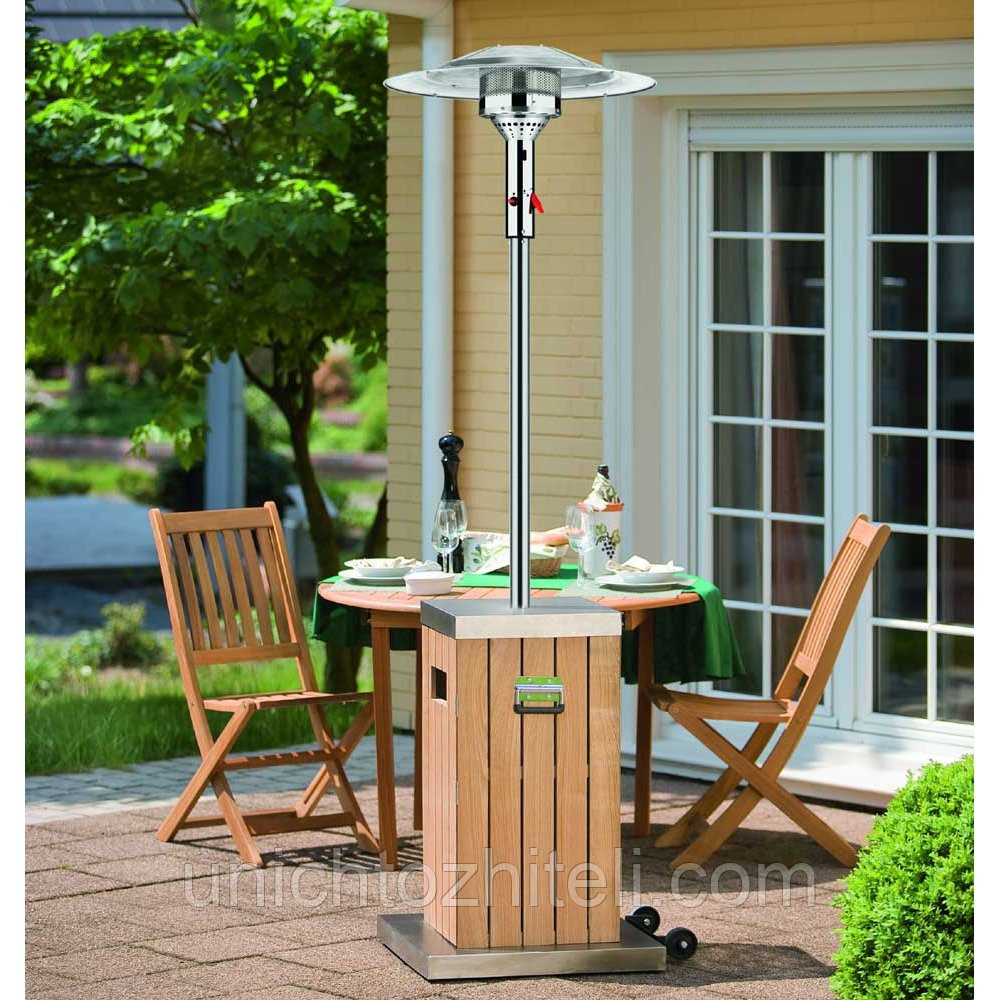 Diese deutsche Heizung ist viel billiger als ihre Pendants und ist auf eine Reichweite von nur 9 Metern ausgelegt. Das Design des Geräts ähnelt einer Straßenlaterne mit einem Pilz. Sie erreicht eine Höhe von 220 cm Gehäusematerial – polierter Edelstahl. Es ist praktisch, es in der Mitte des Pavillons oder Gartens zu installieren. Die Leistung des Geräts beträgt 8 kW. Der Gasverbrennungsverbrauch beträgt fast 600 g pro Stunde.