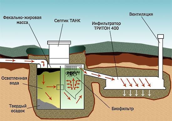Ein universelles Verfahren zur Nachbehandlung und Entsorgung von durch eine Klärgrube gereinigtem Wasser unter solchen Bedingungen ist die Installation eines Infiltrators, bei dem es sich um einen länglichen rechteckigen Behälter handelt, an dessen Boden sich viele Löcher befinden, durch die eine relativ gereinigte Flüssigkeit nach unten sickert .