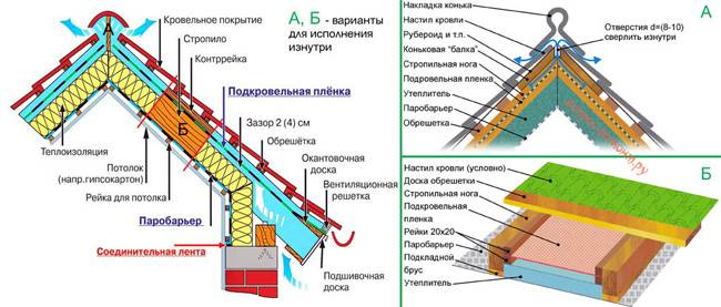 Dachformen sind sehr vielfältig.Unterscheiden sich in einer Vielzahl und Materialien, aus denen das Dachgewebe hergestellt wird. Aber wie dem auch sei, Dachdecker sind nur für die Abdichtung des Daches zuständig, auf keinen Fall aber für die Wärmedämmung. Darüber hinaus ist es üblich, einen Dachboden so zu bauen, dass er gut belüftet ist, um Materialschäden, das Auftreten von Stagnations- und Fäulnisprozessen in den Sparren und Baumstämmen zu vermeiden. In diesem Fall sammelt sich keine für Holz und Metall schädliche Feuchtigkeit unter der Beschichtung.