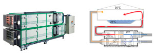 Klimagerät Menerga ThermoCond 39 mit asymmetrischem Hochleistungswärmetauscher und integrierter Wärmepumpe