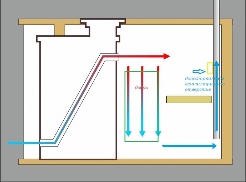 Für eine natürliche Belüftung ist nur ein Loch erforderlich. Wenn Sie künstliche Luft verwenden, müssen Sie Diffusoren installieren, Löcher dafür einbauen und dann die Gitter und Luftkanäle sorgfältig befestigen.