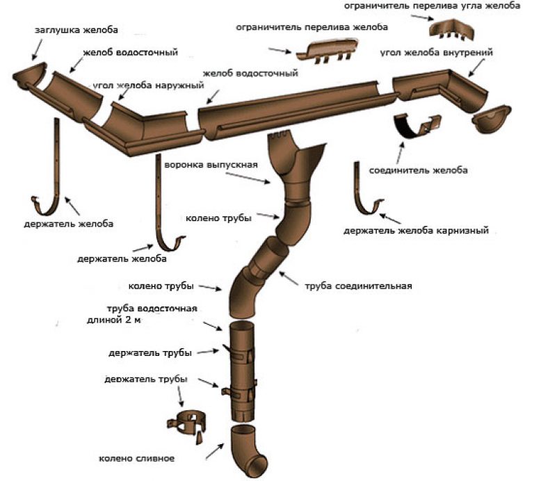 Die restlichen Elemente werden basierend auf dem Durchmesser der Rohre gekauft, aus denen die Dachrinnen hergestellt werden.