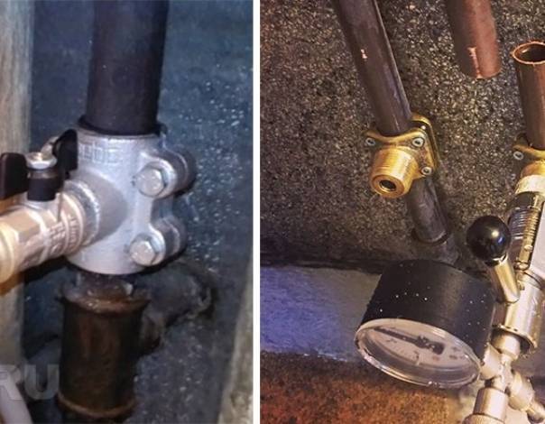 Ein Stahlrohr ist etwas dehnbarer als ein Gusseisenrohr, daher erfolgt das Einbinden der Rohre nach einer ähnlichen Technik wie die Lösung mit einer Polymerleitung, aber der Sattel wird nicht verwendet und vor dem Herstellen einer Verbindung -in einer Wasserleitung aus verzinktem Stahl werden die folgenden Schritte durchgeführt: