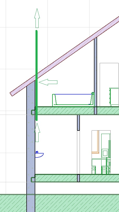 - Für das Badezimmer ist ein vertikaler Luftkanal erforderlich, der nicht mit Luftkanälen in anderen Räumen kombiniert werden kann.