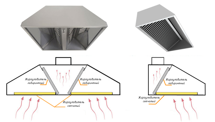 In manchen Fällen ist es vorteilhafter, mehrere kleine Hauben zu installieren als eine große. Diese Konstruktion ist einfacher zu demontieren und zu transportieren.